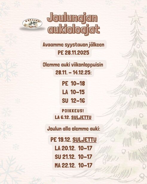 Olemme auki viikonloppuisin jouluun asti🎄