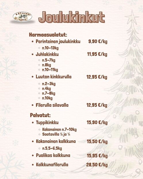 Kinkkutilaukset puhelimitse tai sähköpostilla.